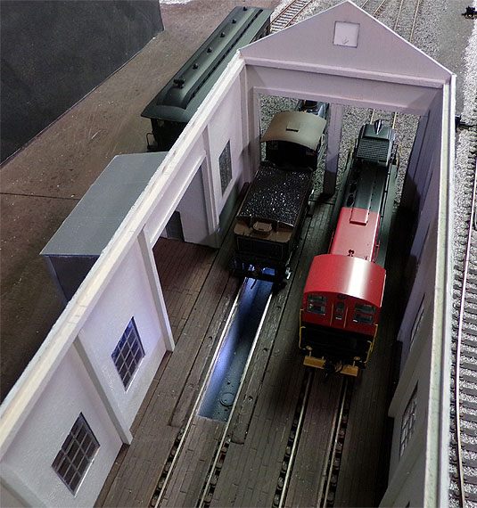 A Two Locomotive Metal Engine House with Extenion, HO Scale, 8"W X 12.5” X 5"H